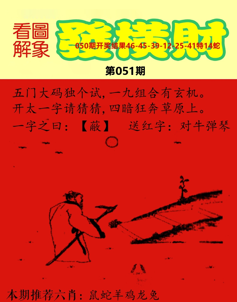 | 051期:欲赚钱找特码 | 051期:平特1肖1肖 |
